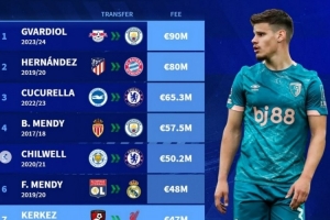 體育資訊6月26日訊 科爾克茲正式轉(zhuǎn)會加盟利物浦,德轉(zhuǎn)也盤點了足壇歷史左后衛(wèi)球員轉(zhuǎn)會費榜單,其中格瓦迪奧爾居首,科爾克茲第7,具體如下: