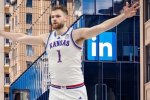 在2024-25賽季,迪金森代表堪薩斯大學(xué)出戰(zhàn)34場(chǎng)比賽,場(chǎng)均30.1分鐘,得到17.4分10.0籃板2.1助攻1.0搶斷1.3蓋帽,三項(xiàng)命中率為52.6/27.6/74.8%。