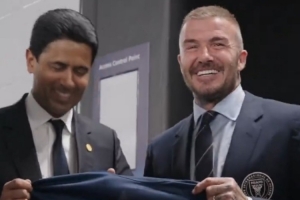 巴黎官方更新社媒動態(tài),曬出邁阿密國際老板貝克漢姆與巴黎主席納賽爾、主帥恩里克、球員見面的視頻,貝克漢姆獲贈巴黎球衣。
