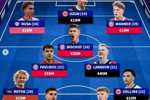 體育資訊7月5日訊 《轉(zhuǎn)會市場》統(tǒng)計了德甲U21球員身價最貴陣容,拜仁4將、法蘭克福3人在列。