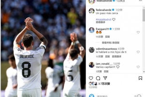 巴爾韋德為皇馬踢滿全場,賽后他在社交媒體上曬出謝場照片,配文:“又近一步?!?/p>