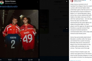 阿茲努和阿什拉夫均來自摩洛哥,兩人是國(guó)家隊(duì)隊(duì)友,后者不僅是拜仁小將的偶像,在國(guó)家隊(duì)也很照顧他。最近,阿茲努和阿什拉夫還簽約同一家經(jīng)紀(jì)公司Footfeel ISM。因此,對(duì)于兩位球員和經(jīng)紀(jì)公司來說,這場(chǎng)比賽創(chuàng)造了一個(gè)特別的時(shí)刻,大家都希望通過交換球衣并在社交媒體上發(fā)布照片來紀(jì)念。