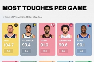 賽季場均觸球次數(shù)排行:約基奇斷檔第一 杰倫-約翰遜驚艷上榜