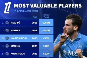 體育資訊1月18日訊 官方消息,巴黎圣日耳曼從那不勒斯引進(jìn)邊鋒克瓦拉茨赫利亞,雙方簽約至2029年。據(jù)羅馬諾報(bào)道,這筆交易的轉(zhuǎn)會(huì)費(fèi)超過(guò)7000萬(wàn)歐。德轉(zhuǎn)也在社媒發(fā)布了法甲歷史前10身價(jià)的球員排行榜,前十均是巴黎圣日耳曼球員。