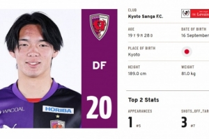 喜多壹也出生于2005年9月16日,身高1.89米,去年升入京都不死鳥一線隊(duì),已經(jīng)為球隊(duì)出戰(zhàn)5場(chǎng)比賽,但是沒有在J聯(lián)賽亮相過。