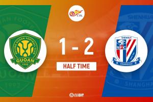 上半場傷停補時6分鐘,半場結(jié)束,北京國安暫1-2上海申花。