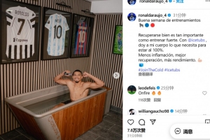 體育資訊7月20日訊 巴薩后衛(wèi)阿勞霍更新社交媒體,曬出了自己在結(jié)束訓(xùn)練后的恢復(fù)照。