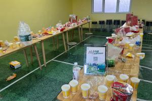 來(lái)到青島西海岸的客隊(duì)球迷區(qū),人家賽區(qū)竟然在客隊(duì)球迷休息室里準(zhǔn)備了一堆吃的喝的,包括但不限于肯德基、方便面、礦泉水。