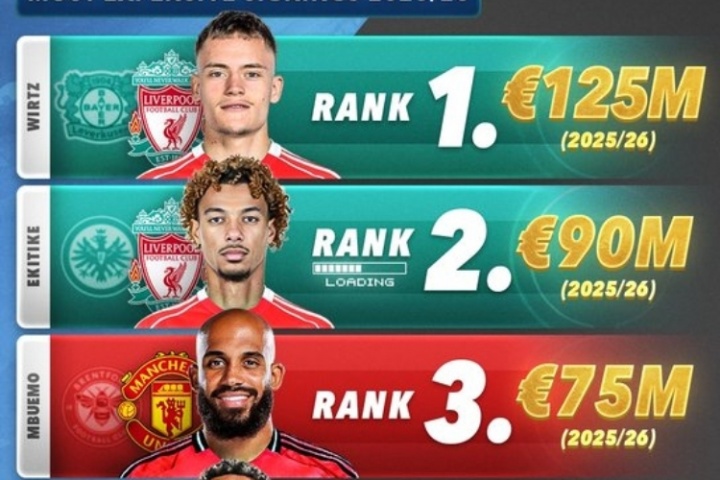 體育資訊07月24日訊 Score90按照轉(zhuǎn)會(huì)費(fèi)用,盤(pán)點(diǎn)了正在進(jìn)行的夏窗至今為止的轉(zhuǎn)會(huì)榜單,維爾茨以1.25億歐元轉(zhuǎn)會(huì)費(fèi)居首,前五全部由英超包攬,其中利物浦、曼聯(lián)各占2席,阿森納也在榜單中占據(jù)1席。