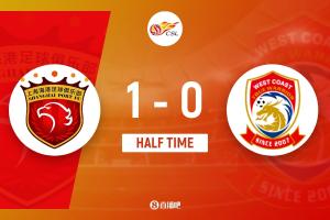 上半場(chǎng)比賽結(jié)束,上海海港1-0青島西海岸。