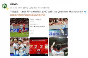體育資訊07月26日訊 中超第18輪,上海海港vs青島西海岸,比賽第86分鐘,35歲老將高迪為青島西海岸扳平海港,幫助球隊搶下1分。
