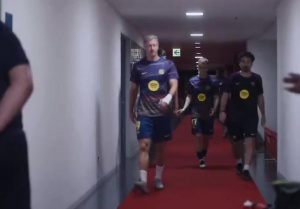 在場(chǎng)下,年僅18歲的中衛(wèi)庫(kù)巴西展現(xiàn)出了成熟的一面。他走出更衣室,在球員通道中等待替補(bǔ)的隊(duì)友們經(jīng)過,與他們一一擊掌,互相鼓勵(lì),其中還有36歲的老將萊萬和球隊(duì)的工作人員。