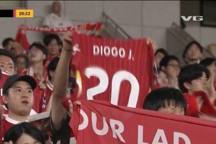 體育資訊07月30日訊 北京時間18點30分,利物浦客場挑戰(zhàn)橫濱水手。比賽第20分鐘,現(xiàn)場球迷起立鼓掌致敬今年夏天不幸去世的利物浦球員若塔!