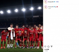 而利物浦官方社媒也在賽后曬出了全隊合照,遠藤航和隊長范迪克共同手捧獎杯站在C位。