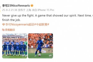 體育資訊8月2日訊 中超聯(lián)賽第19輪,上海申花客場在0-3落后的情況下,4-4戰(zhàn)平云南玉昆。賽后,申花球員李可更新了個人社交媒體。