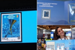 這枚郵票屬于“社會價值”主題系列,其發(fā)布儀式在卡斯特爾迪桑格羅體育館舉行。這座阿布魯佐大區(qū)的小城已連續(xù)六年承辦那不勒斯季前集訓(xùn),自然也成為眾多那不勒斯球迷的朝圣地。出席活動的有市長安杰洛-卡魯索、那不勒斯運營總監(jiān)詹盧卡-巴耶西,以及分管集郵事務(wù)的副部長福斯塔-貝爾加莫托、意大利郵政集郵商業(yè)總監(jiān)馬爾科-迪尼古拉、國家印鈔造幣廠代表克里斯蒂亞諾-納波利,以及擔(dān)任主持的《華爾街意大利》主編萊奧波爾多-加斯巴羅。