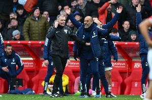 體育資訊1月20日訊 英超第22輪比賽,諾丁漢森林在主場(chǎng)以3-2的比分戰(zhàn)勝南安普頓,在積分榜上僅僅以?xún)魟偾虻牧觿?shì)落后阿森納位居第3位。