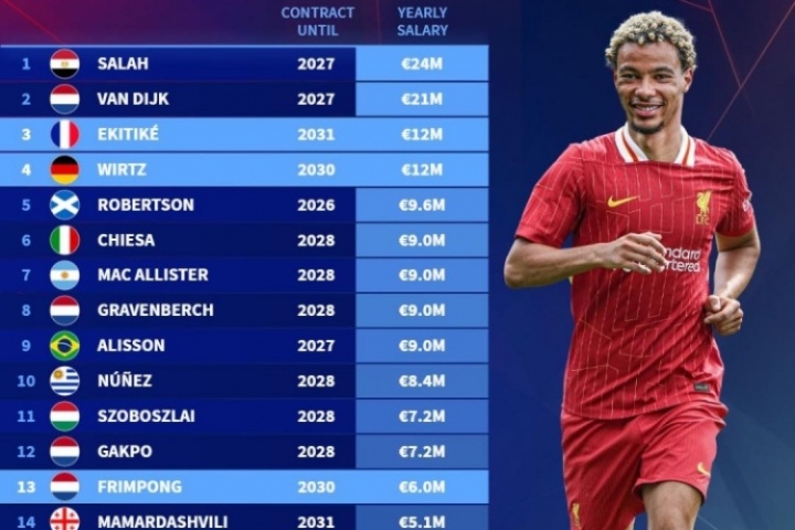 體育資訊08月04日訊 近日,德轉(zhuǎn)根據(jù)著名足球金融機構capology的數(shù)據(jù),列出了利物浦目前隊內(nèi)的薪資排行,其中新援?;倏撕途S爾茨以1200萬歐年薪并列第3,弗林蓬600萬歐位列第13,科爾克茲僅列第19。