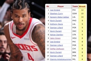 據(jù)統(tǒng)計,這是杰倫-格林連續(xù)第8場比賽至少砍下25+,且真實命中率達到60%。杰倫-格林是NBA歷史上第13位達成這一成就的球員,且是最年輕的一位。