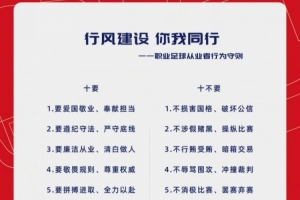 讓我們攜手努力,恪守“十要十不要”,從自身做起,以良好言行共筑職業(yè)足球新形象,為中國(guó)足球健康發(fā)展貢獻(xiàn)力量!