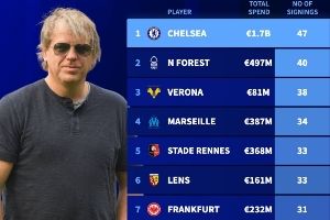 英超big6引援費(fèi)用及人數(shù):切爾西花費(fèi)17億歐簽下47名球員,斷檔領(lǐng)先↓