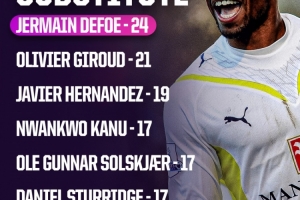 ■以下是英超聯(lián)賽 | 歷史紀(jì)錄??替補(bǔ)球員射手榜: