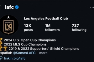 體育資訊8月6日訊 據(jù)記者Favian Renkel報道,洛杉磯FC俱樂部ins粉絲數(shù)量突破100萬。