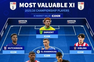 體育資訊8月8日訊 新賽季英冠今夜開打,德轉(zhuǎn)列出了截至目前聯(lián)賽最貴11人陣,迪布林、哈欽森、埃爾哈努斯、貝利斯在列,11人總身價2.06億歐。