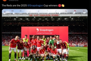 曼聯(lián)官方社媒也曬出球隊與冠軍獎杯的大合影,配文寫道:“紅魔是2025年驍龍杯冠軍!”