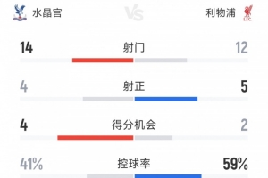 體育資訊8月11日訊 在社區(qū)盾杯決賽,利物浦與水晶宮90分鐘戰(zhàn)成2-2,雙方將進(jìn)行點(diǎn)球大戰(zhàn)。以下為雙方比賽數(shù)據(jù)對比: