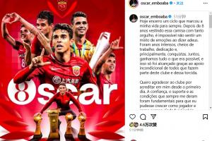 奧斯卡寫(xiě)道:“今天,我結(jié)束了一個(gè)永遠(yuǎn)銘刻在我生命中的篇章。在穿上這件球衣并為之驕傲了8年后,說(shuō)再見(jiàn)時(shí)的心情無(wú)比復(fù)雜,充滿了各種情感。這些年充滿了努力、奉獻(xiàn),最重要的是,充滿了成就。我們一起贏得了所有可以贏得的榮譽(yù),這一切都得益于所有俱樂(lè)部成員和球迷們的無(wú)私支持。”