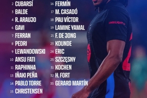 體育資訊1月20日訊 北京時間1月22日周三凌晨4點,巴薩將在歐冠聯(lián)賽階段第7輪客場挑戰(zhàn)本菲卡,今天巴薩方面公布了大名單。