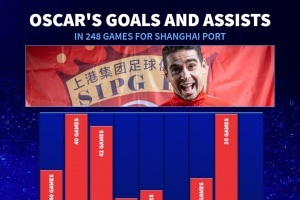 奧斯卡2017年加盟海港,據(jù)傳每周工資48萬歐,效力海港期間總收入超2.11億歐(折合人民幣16.1898億)。