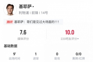 體育資訊8月16日訊 基耶薩在本場比賽中替補登場,并完成絕殺。