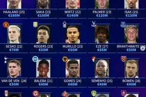 體育資訊8月17日訊 新賽季英超已經(jīng)開幕,德轉(zhuǎn)也盤點了英超20支球隊中身價最高的球員,其中哈蘭德1.8億歐領銜,具體如下: