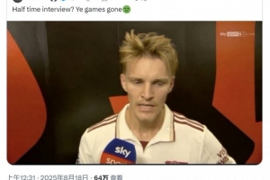 上一篇: 厄德高中場(chǎng)休息還要被采訪引不滿,球迷:荒謬!讓球員去專注比賽