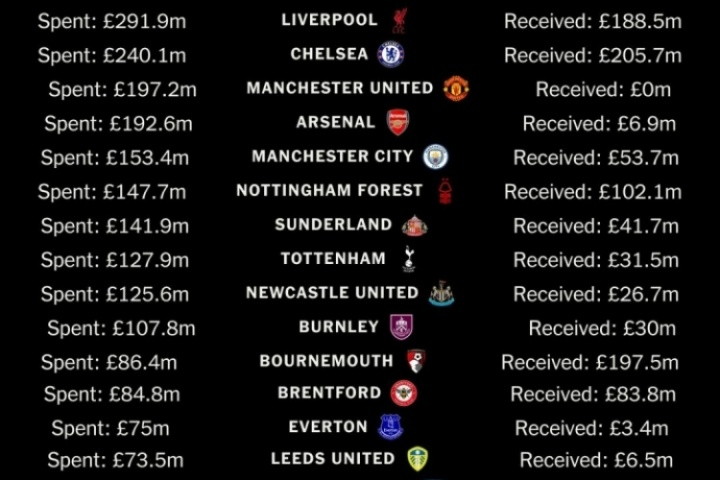 體育資訊08月19日訊 TA統(tǒng)計了截止至8月18日英超各隊的夏窗收支情況,其中利物浦2.9億鎊支出居首 曼聯(lián)凈支出1.97億鎊最多。