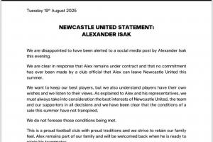 紐卡官方:從未承諾伊薩克可在今夏離隊(duì),明確表示轉(zhuǎn)會(huì)條件未達(dá)成