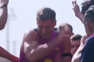 體育資訊8月22日訊 巴薩官方曬出球員們?cè)谟?xùn)練場為萊萬慶生的視頻。