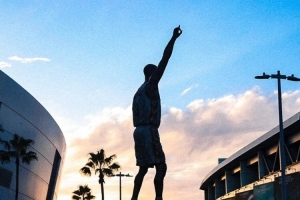 第二條動(dòng)態(tài),湖人官推分享了球隊(duì)主場(chǎng)外的科比雕像,配文寫(xiě)道:“曼巴永恒?!?/p>