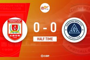 半場(chǎng)結(jié)束,長(zhǎng)春亞泰0-0深圳新鵬城。