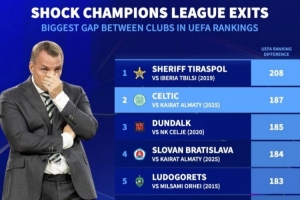 體育資訊8月28日訊 歐冠附加賽次回合,凱爾特人在點(diǎn)球大戰(zhàn)中不敵阿拉木圖凱拉特,目送對(duì)手隊(duì)史首次闖進(jìn)歐冠正賽。根據(jù)德國轉(zhuǎn)會(huì)市場(chǎng)的統(tǒng)計(jì),凱爾特人本次被淘汰是歐冠歷史交鋒兩隊(duì)歐足聯(lián)積分差距第二大。