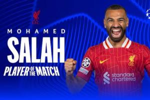 官方消息,薩拉赫當(dāng)選本場比賽最佳球員。