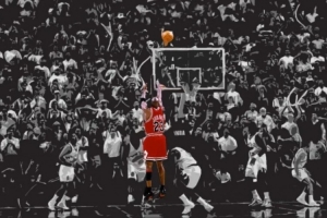 1997年總決賽第一場,郵差被皮彭“星期天不上班”,罰球失手,喬丹射中絕殺,回頭霸氣揮拳。