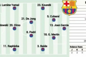 體育資訊8月31日訊 北京時(shí)間周一凌晨的西甲第3輪比賽,巴薩將前往客場(chǎng)挑戰(zhàn)巴列卡諾。《阿斯報(bào)》對(duì)本場(chǎng)比賽首發(fā)陣容進(jìn)行了預(yù)測(cè),庫巴西和杰拉德-馬丁搭檔中衛(wèi),萊萬、亞馬爾和拉菲尼亞組成進(jìn)攻三叉戟,加維缺陣。