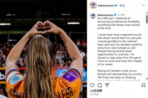 她在告別信中表示:小時候,我就夢想成為一名職業(yè)足球運動員,盡管在那時甚至沒有幾名職業(yè)女足球員存在。