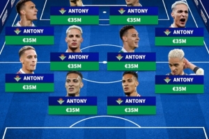 體育資訊9月2日訊 五大聯(lián)賽夏窗關(guān)閉,德轉(zhuǎn)整活安東尼,貝蒂斯全員安東尼。
