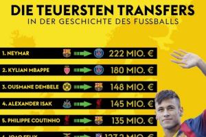 體育資訊09月04日訊 夏窗已經(jīng)結(jié)束,德天空統(tǒng)計(jì)了最新的足壇歷史最貴轉(zhuǎn)會(huì)排行榜,其中,伊薩克位居第四,維爾茨位列第八,內(nèi)馬爾仍居首。
