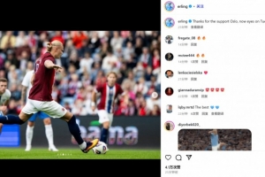哈蘭德也在賽后通過社媒曬出了比賽照,并配文:“感謝奧斯陸主場球迷們的支持,現(xiàn)在專注于周二(的比賽)?!?/p>