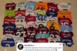 索蘭克社媒曬出收藏的球衣,其中包括孫興慜、薩拉赫、哈蘭德、德布勞內(nèi)、卡塞米羅、安東尼等人的戰(zhàn)袍。